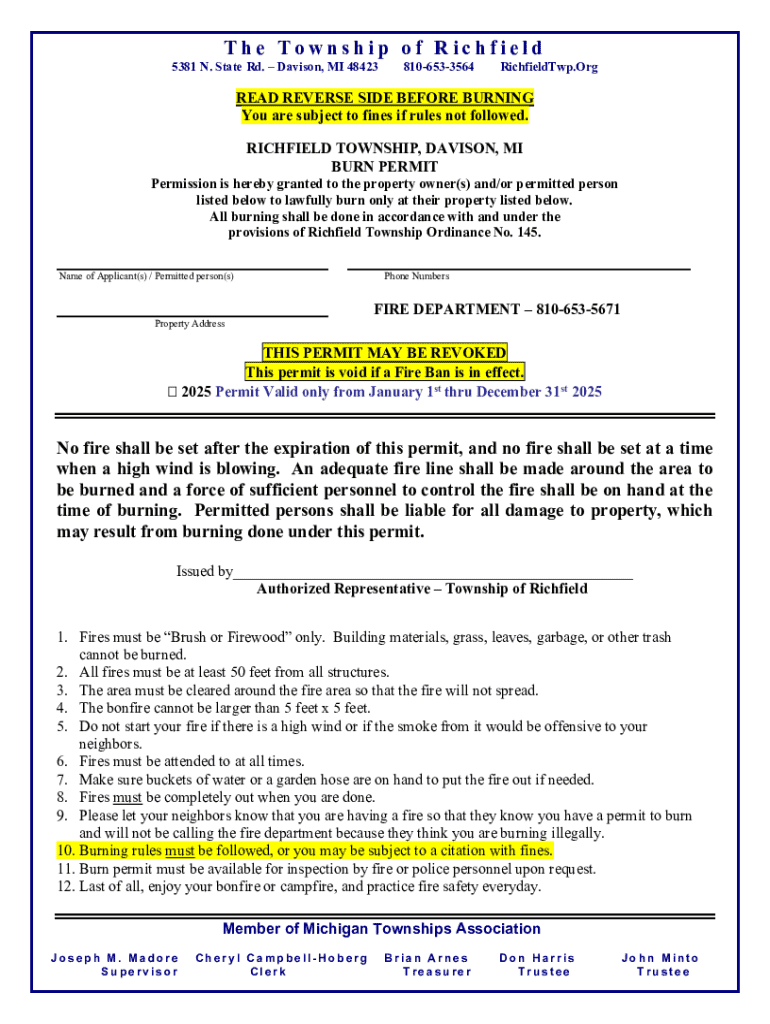 Get the free Burn Permit