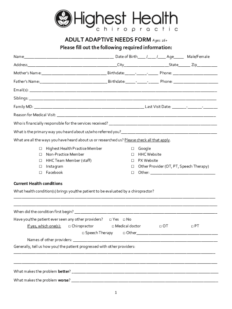 Get the free Adult Adaptive Needs Form