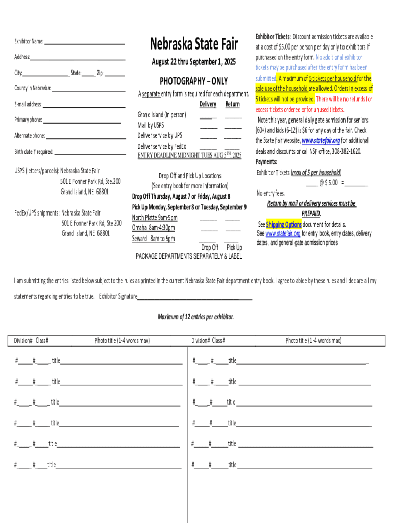 If you opt for mailing, make sure to send it well before the deadline to avoid late submissions. Important deadlines for the Nebraska State Fair are typically outlined on the fair's website, so be sure to check regularly to ensure your entry is on time.