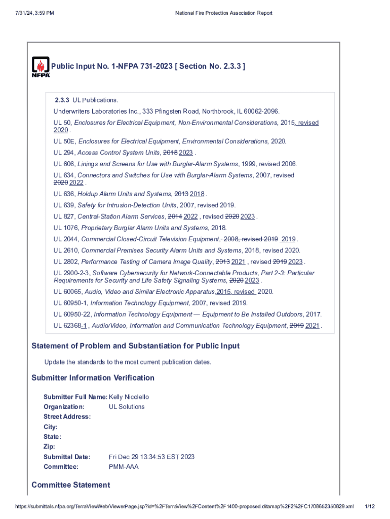 Get the free National Fire Protection Association Report
