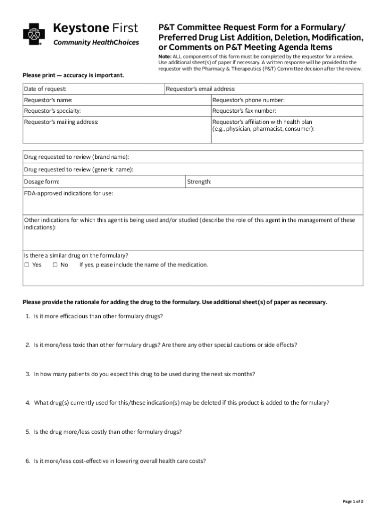 The importance of the PT Committee within healthcare cannot be overstated. Its members are responsible for evaluating the safety, efficacy, and cost-effectiveness of medications, ultimately impacting patient outcomes and institutional practices. By utilizing the PT Committee Request Form, healthcare providers can ensure that their medication requests are thoroughly examined, thereby facilitating comprehensive decision-making processes.