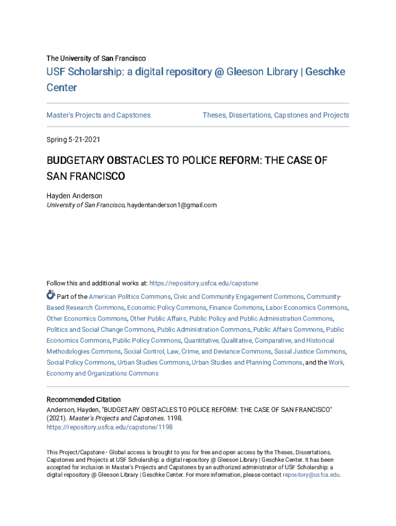Get the free Budgetary Obstacles to Police Reform: the Case of San Francisco