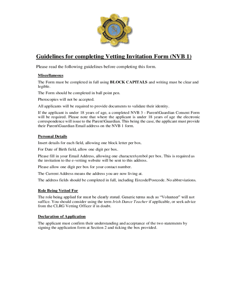 Step-by-step instructions for completing the NVB 1 form
