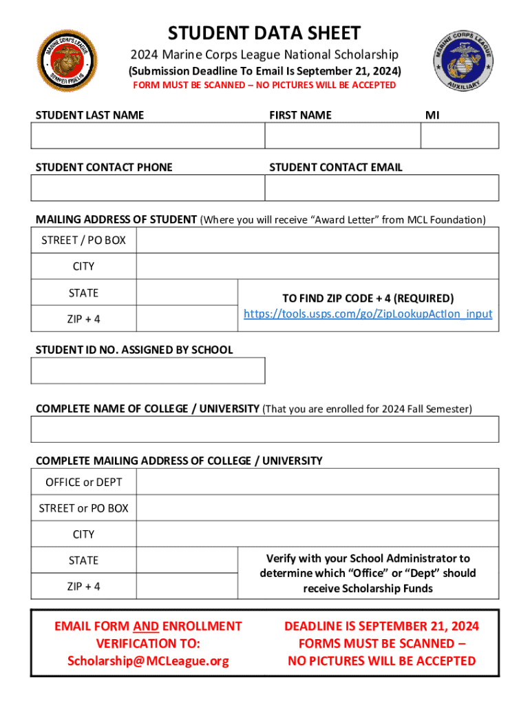Get the free Marine Corps League National Scholarship