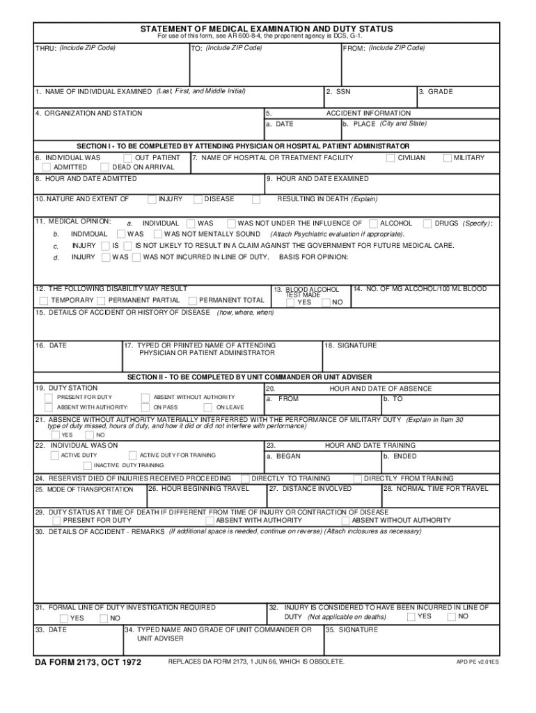 The importance of DA Form 2173 cannot be overstated; it plays a critical role not only in individual medical evaluations but also in establishing eligibility for disability claims and benefits. Properly documenting a service member's medical history ensures that they receive the necessary support and resources needed for recovery and welfare.