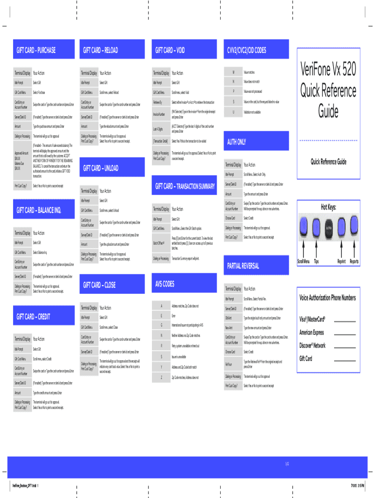 Get the free Verifone Vx 520 Quick Reference Guide