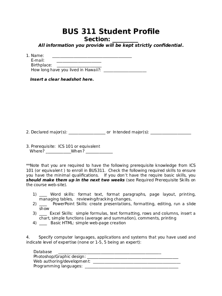 It’s critical for students to keep their information on the Bus 311 Student Profile Form updated. This proactive attention helps institutions allocate resources efficiently and identify students who may require additional support.