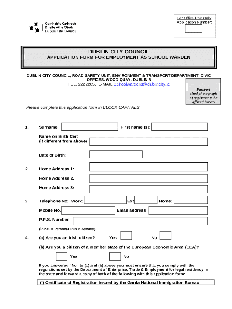 Template Application for Employment as School Warden instructions