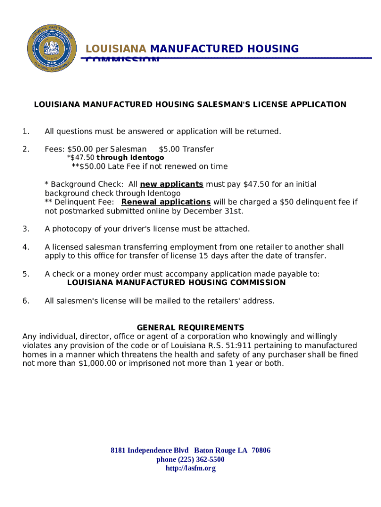 Guide to the Louisiana Manufactured Housing Salesman's Form