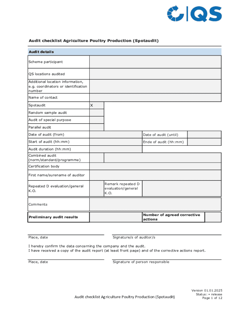 Get the free Audit Checklist Agriculture Poultry Production (spotaudit)