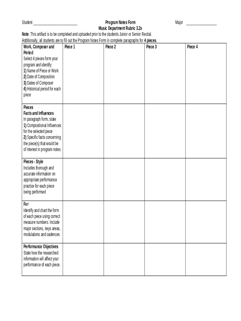 How to fill out Program Notes