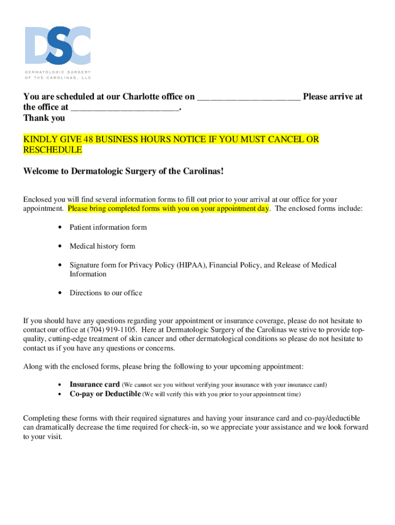 Get the free You are scheduled at our Charlotte office on Please arrive at