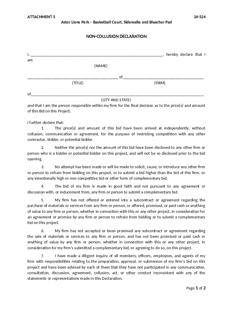 A Comprehensive Guide to the Non-Collusion Declaration Template Form