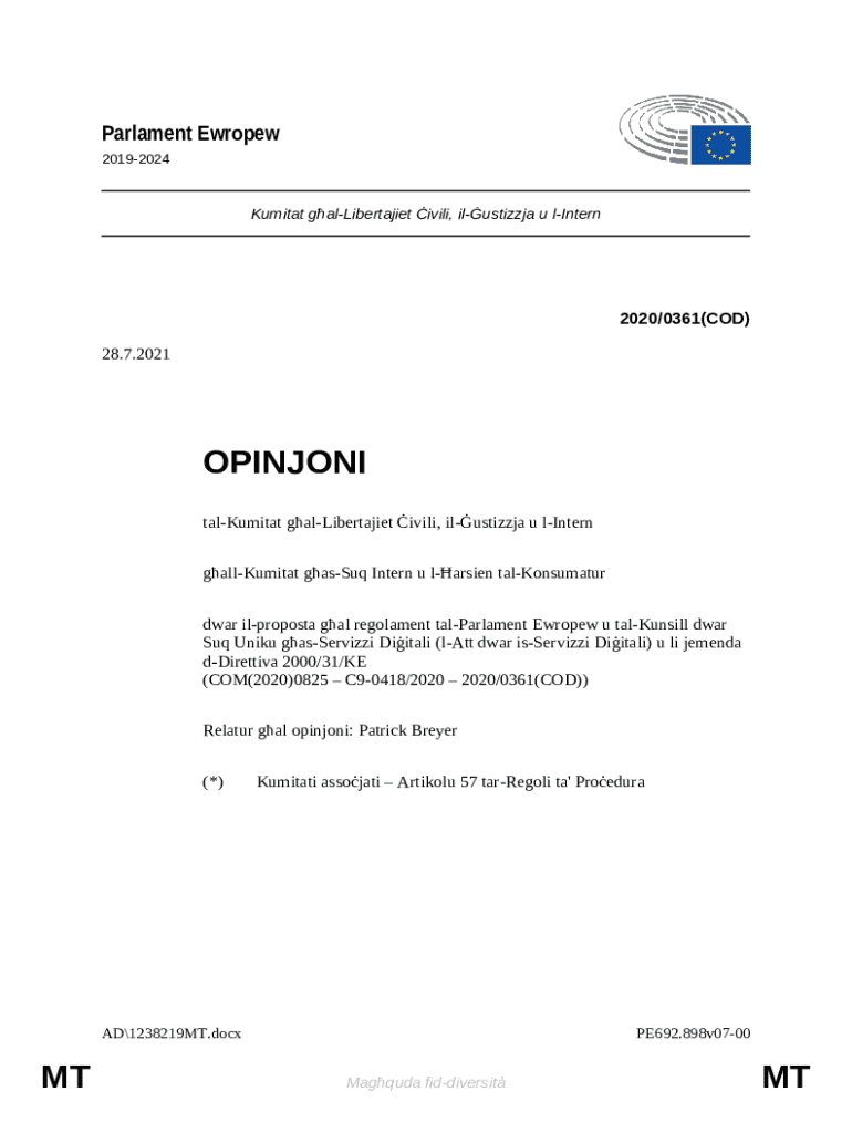 Embracing such solutions encourages active participation in the European legislative landscape, empowering individuals and organizations alike to contribute to meaningful discussions around human rights, data protection, and social justice within Europe’s evolving framework. With pdfFiller's support, navigating the complexities of LIBE documents becomes a seamless and efficient experience.