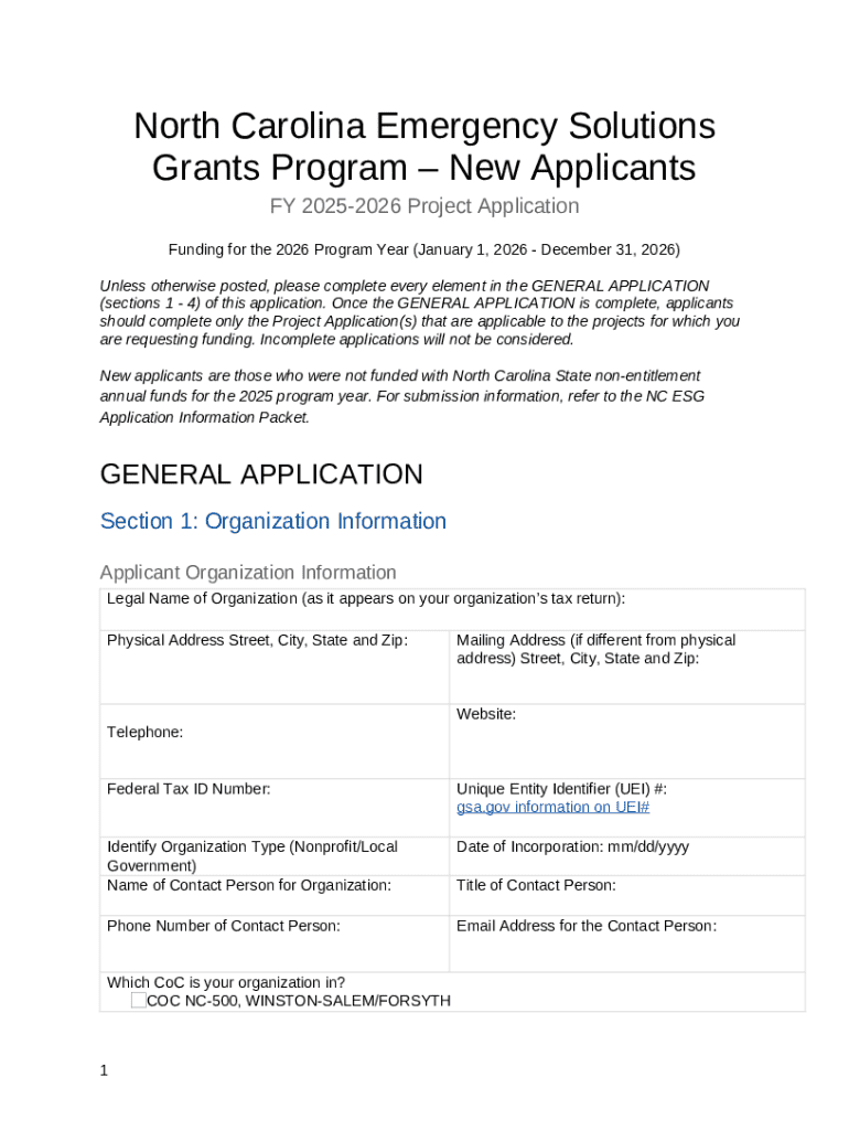 How to fill North Carolina Emergency Solutions Grants Program – New Applicants word template
