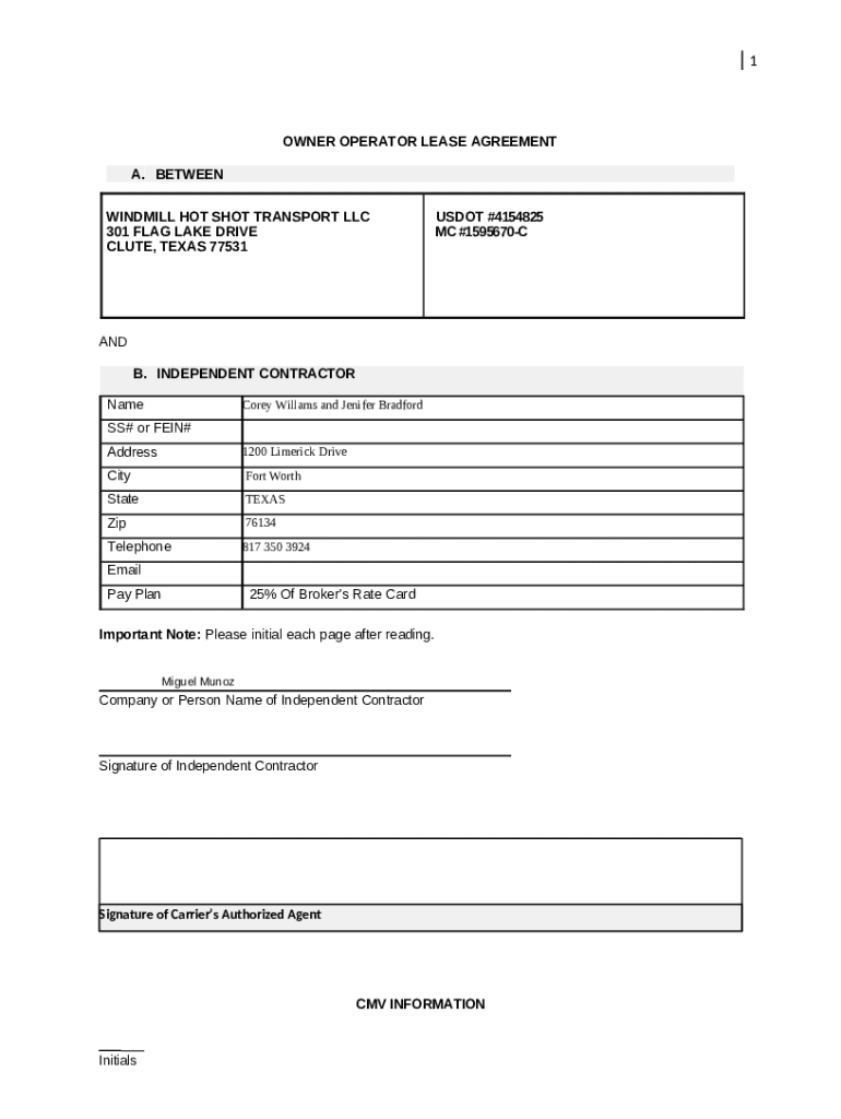 An owner operator lease agreement serves as a legal document that outlines the terms under which an owner-operator driver leases equipment and operates under a specific carrier’s authority. This document is not just a formality; it's a critical tool that clarifies the operational, financial, and legal responsibilities of both parties involved. In the trucking industry, having a comprehensive lease agreement is essential, as it sets the groundwork for a mutually beneficial working relationship.