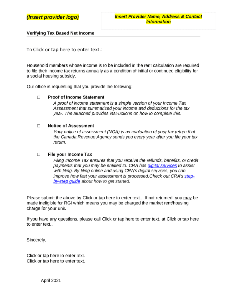 How to fill Verifying Tax Based Net Income word template