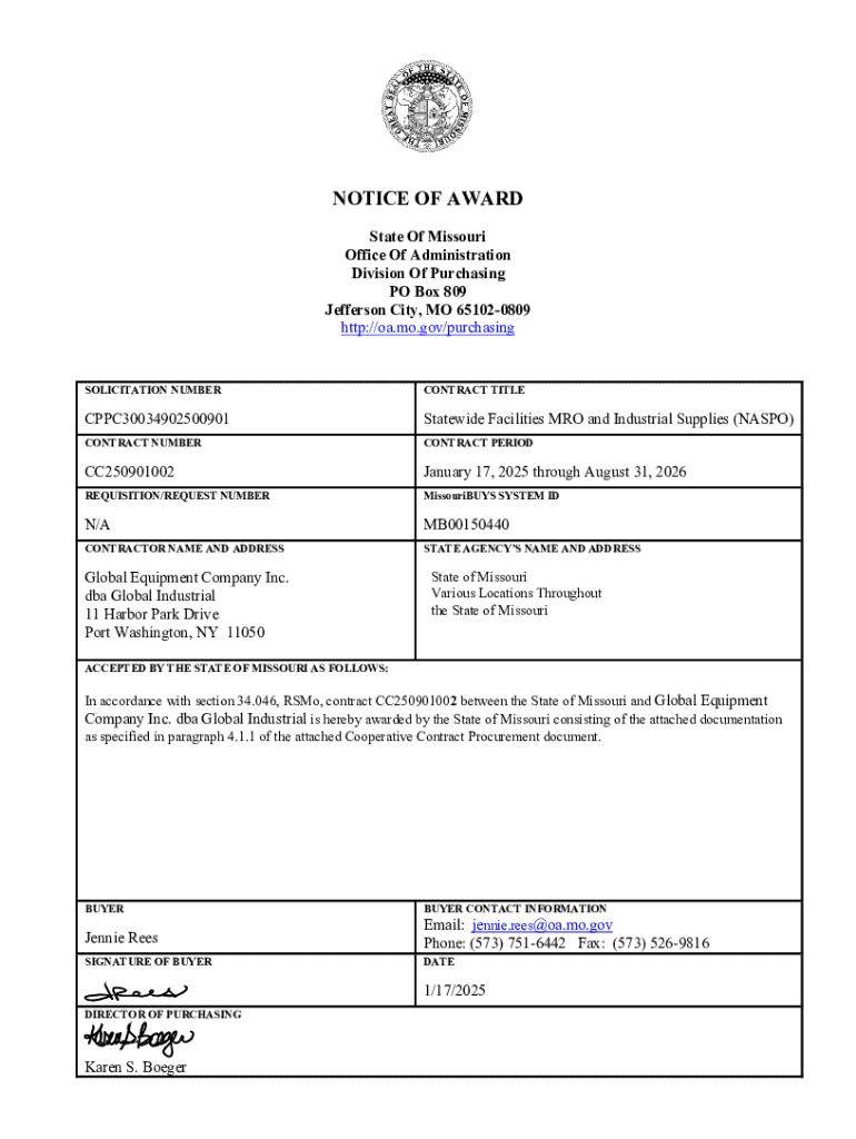 Get the free Notice of Award