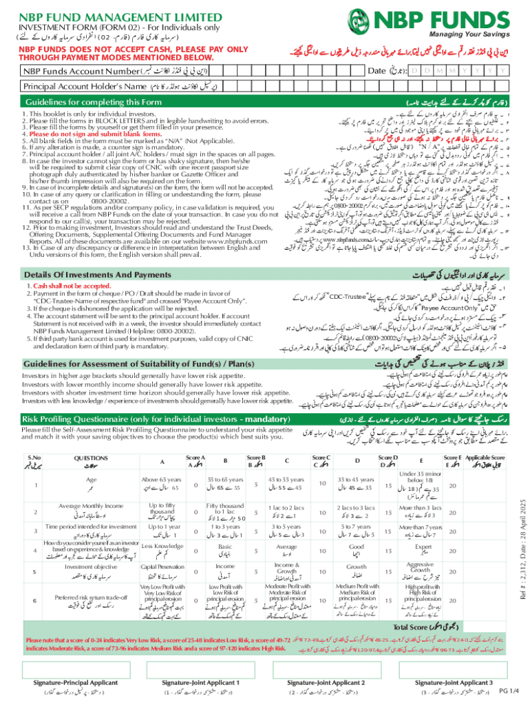 This form is intended for individual investors to manage their savings and make investments with NBP Funds. It includes guidelines on filling out the form, payment instructions, and risk profiling