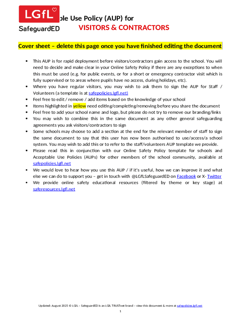 Online Safety within 'Keeping Children Safe in Education' ... template instructions