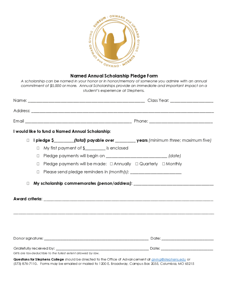 Step-by-step guide to filling out the named annual scholarship pledge form
