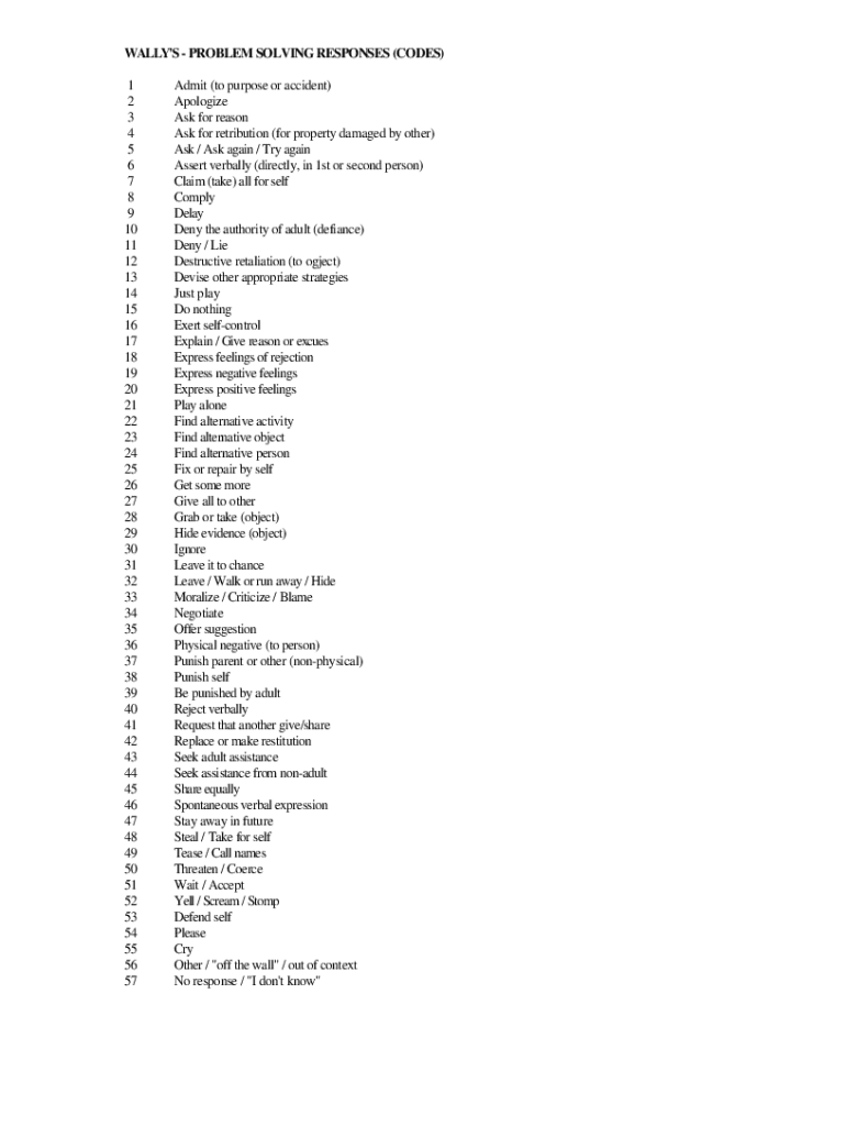This document provides a structured approach to identify and categorize various problemsolving responses in children, along with specific scenarios for behavioral observation.