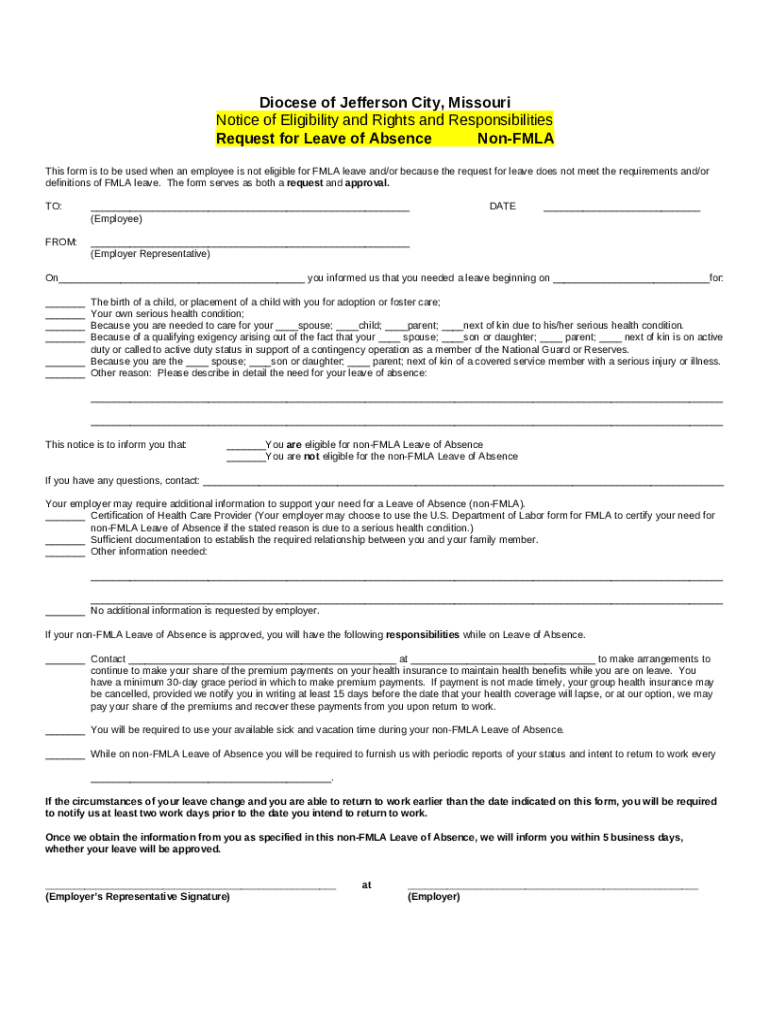 What is Notice of Eligibility and Rights and Responsibilities Request for Leave of Absence Non-fmla Form?