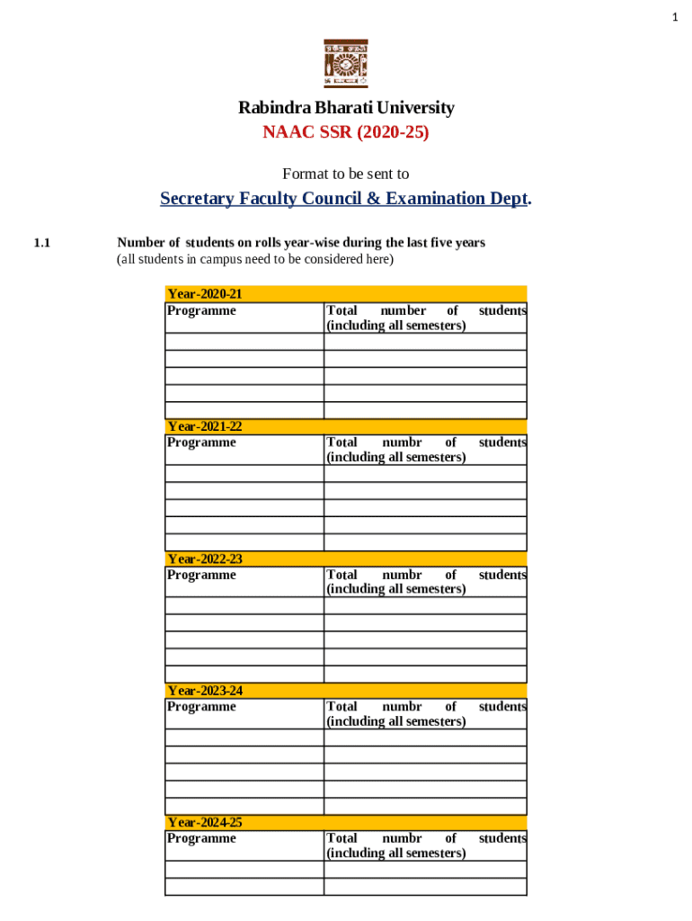Comprehensive Guide to the NAAC SSR 2020-25 Template Form