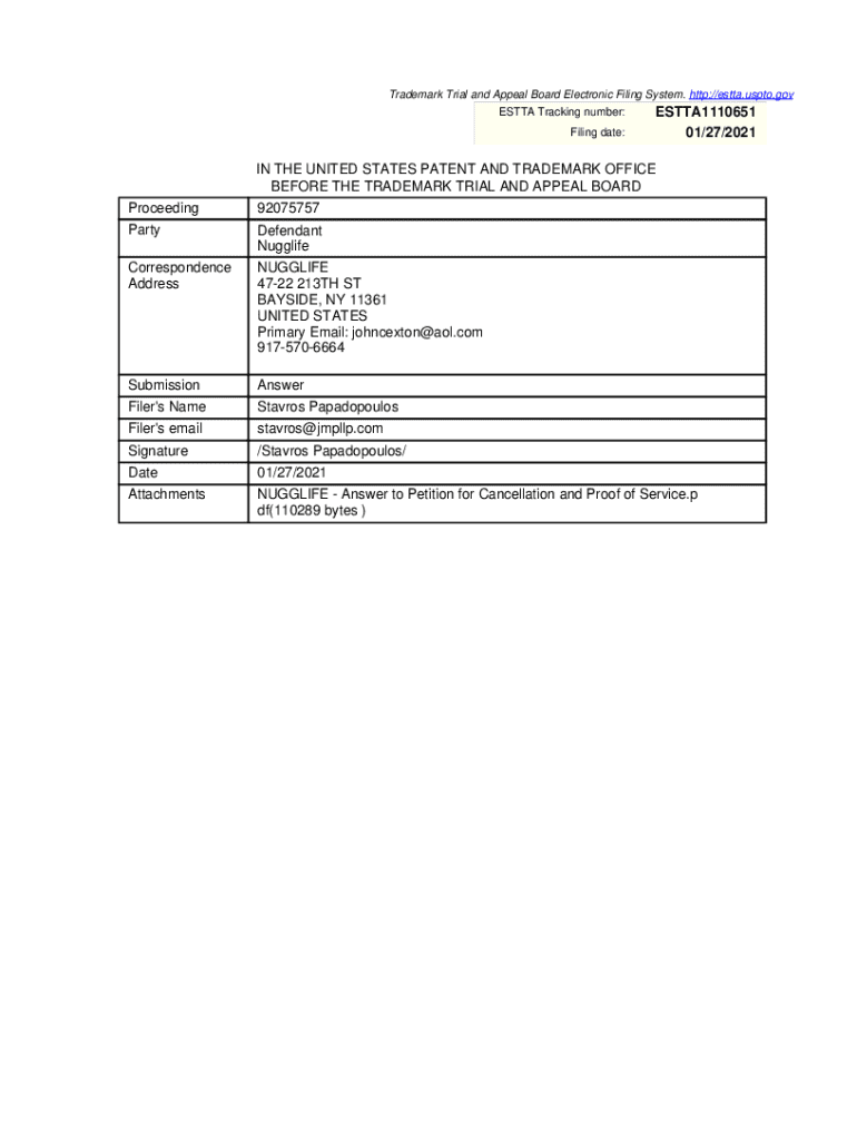 Get the free NUGGLIFE - Answer to Petition for Cancellation and Proof of Service