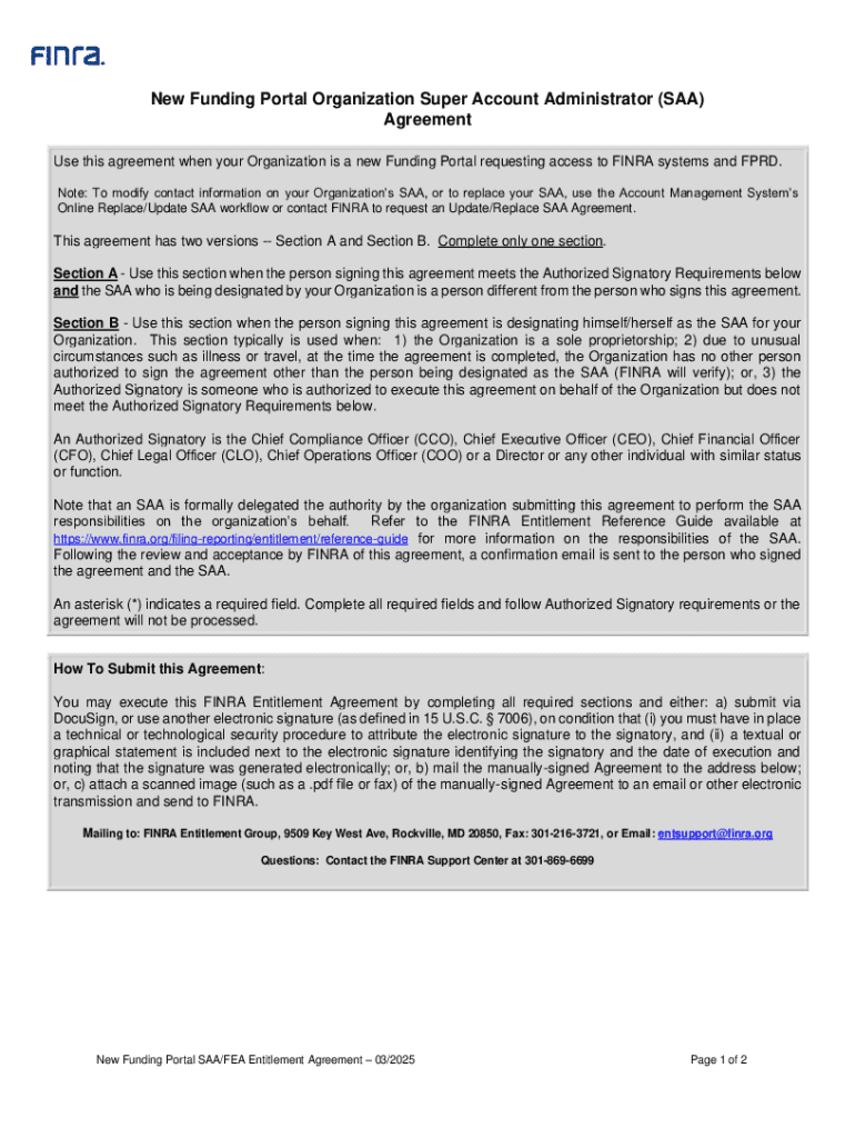 Get the free New Funding Portal Organization Super Account Administrator (saa) Agreement