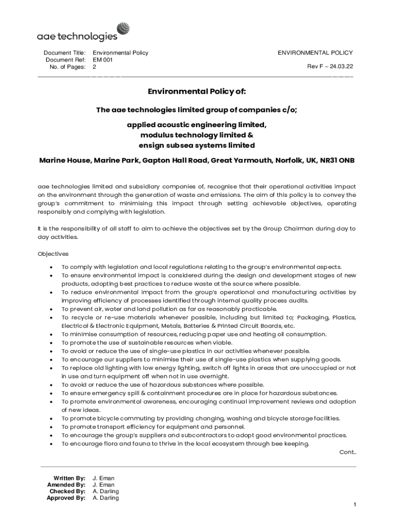 Get the free Environmental Policy