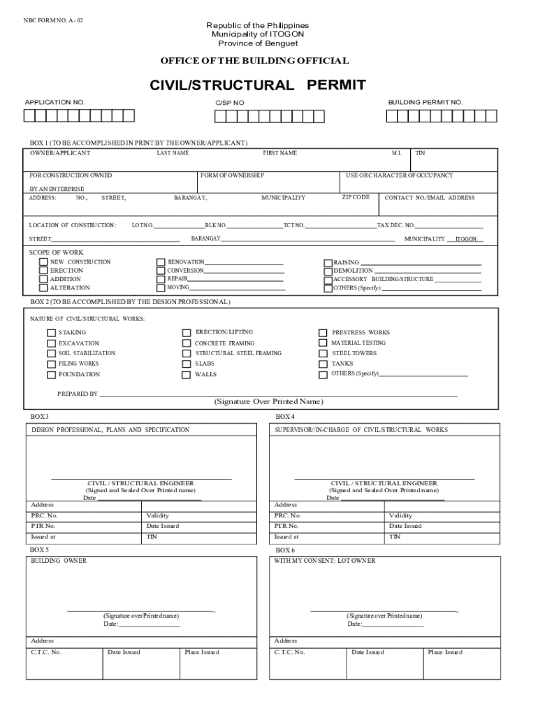 NBC Form No A-02 is a critical document used primarily for applications related to specific regulatory requirements in various sectors. This form serves to gather essential information that helps facilitate compliance and regulation checks within industries such as environmental management, health and safety, and project funding. Accurately completing the NBC Form No A-02 is paramount, as it can significantly impact the processing speed and approval of any requests or applications made through this form.