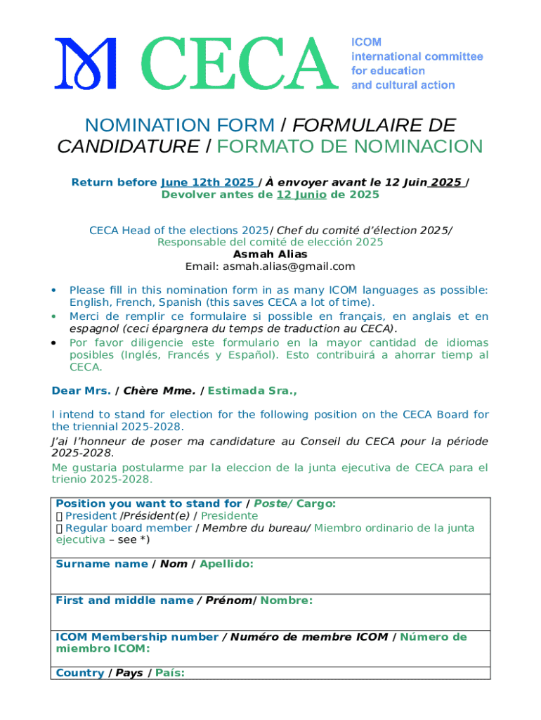 Instructions for the Nomination / ulaire De Candidature / ato De Nominacion form
