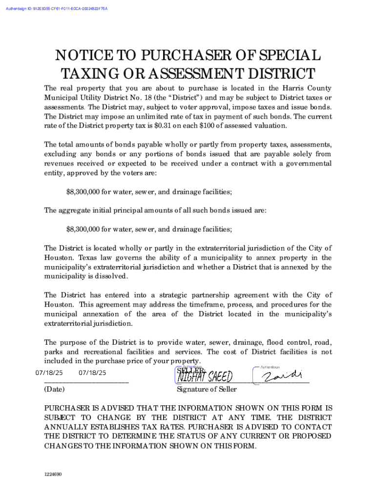 Understanding when and why the Notice to Purchaser Form is necessary is crucial for both buyers and sellers. Key situations can trigger the need for this form, such as purchasing property in a designated special taxing district. In these cases, future financial obligations related to taxes or assessments can arise, making the awareness conveyed by this form indispensable.