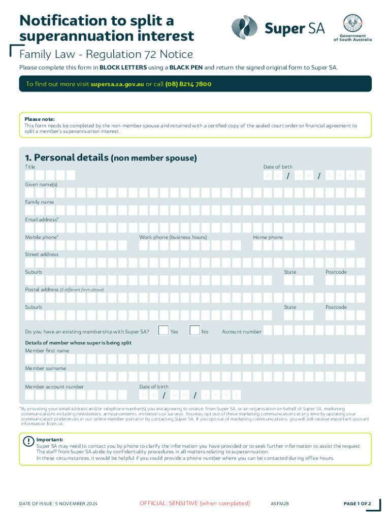 Get the free Notification to Split a Superannuation Interest