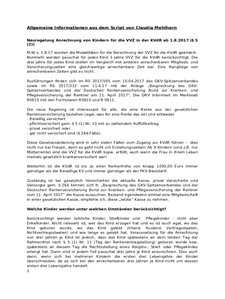 Nachweise und Unterlagen, die benötigt werden: Dazu zählen Geburtsurkunden, Nachweise über die Betreuung, und mögliche Vordrucke des entsprechenden Rentenversicherungsträgers.