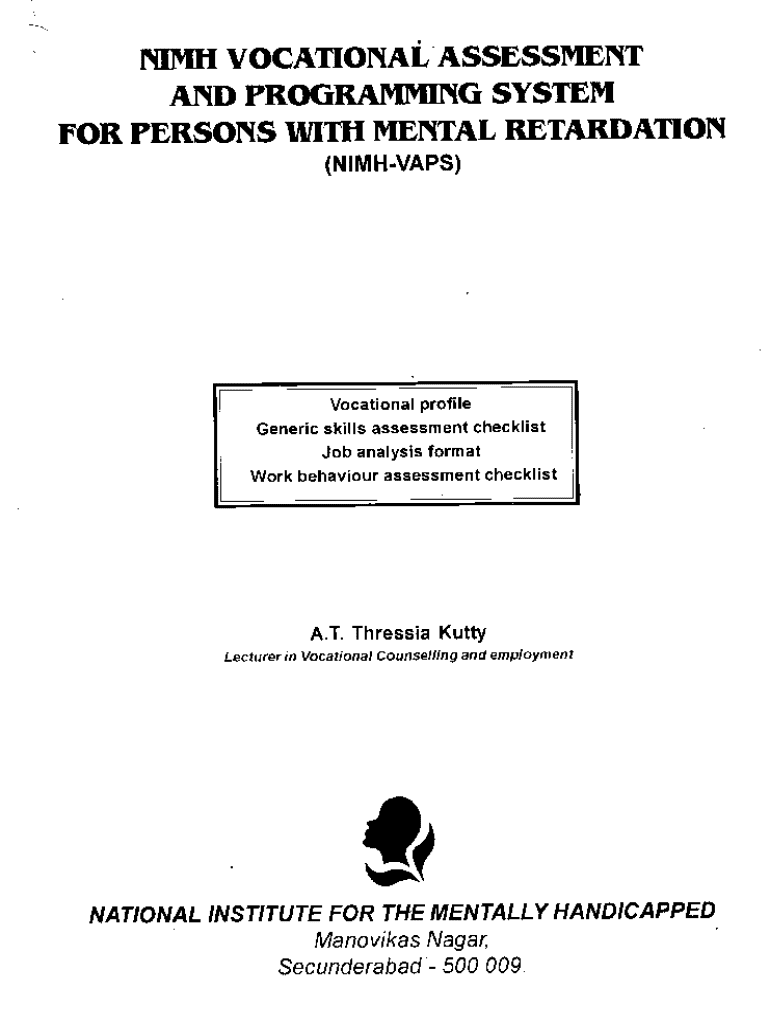 Get the free N1mh Vocational Assessment and Programi'hng System for Persons With Mental Retardation