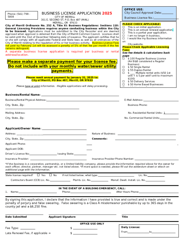 Filling out the business license application form accurately is vital for a successful application. Read each section carefully before completing it. Ensure that your business name is consistent throughout the form and matches any documentation provided.