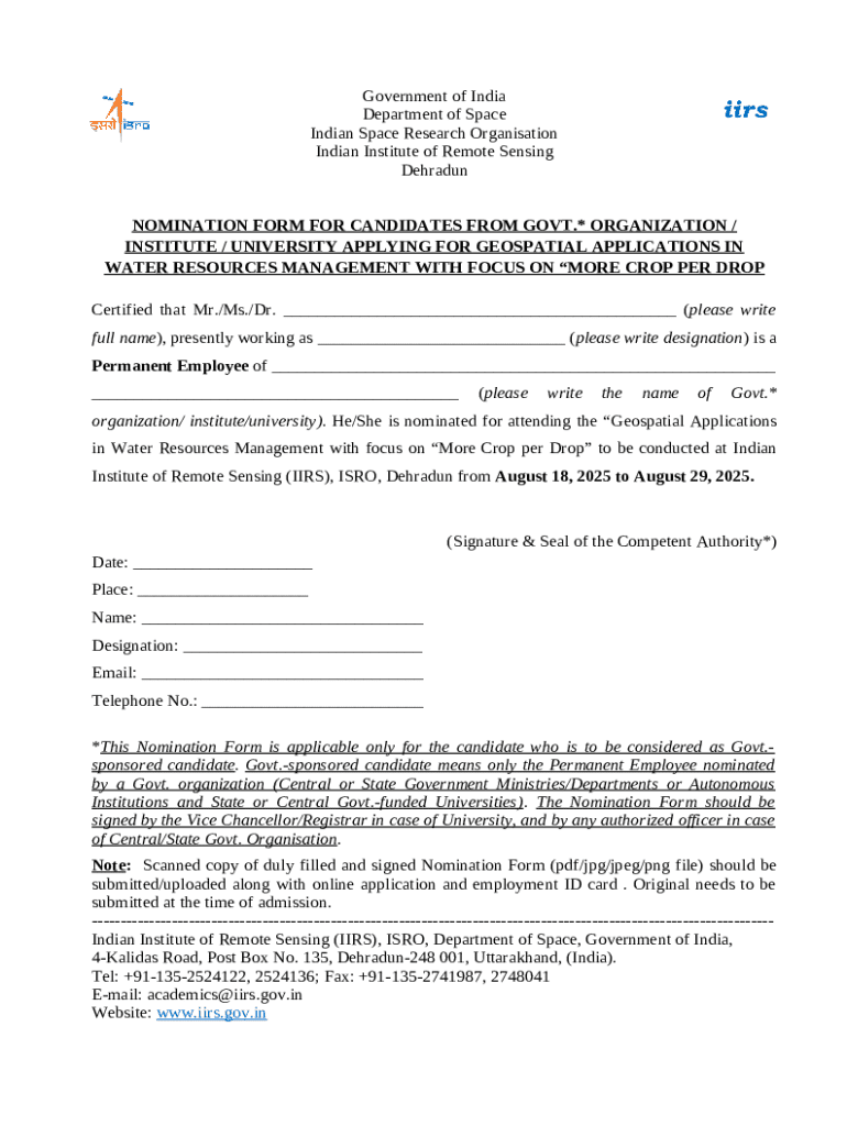 The Nomination for Candidates is a writable document needed to be submitted to the required address to provide certain info. It has to be completed and signed, which is possible in hard copy, or with the help of a particular solution like PDFfiller. This tool lets you fill out any PDF or Word document directly from your browser (no software requred), customize it according to your needs and put a legally-binding e-signature. Right away after completion, the user can send the Nomination for Candidates to the relevant individual, or multiple ones via email or fax. The template is printable as well from PDFfiller feature and options offered for printing out adjustment. In both electronic and in hard copy, your form will have a clean and professional outlook. It's also possible to turn it into a template to use it later, so you don't need to create a new blank form over and over. All that needed is to customize the ready form.
