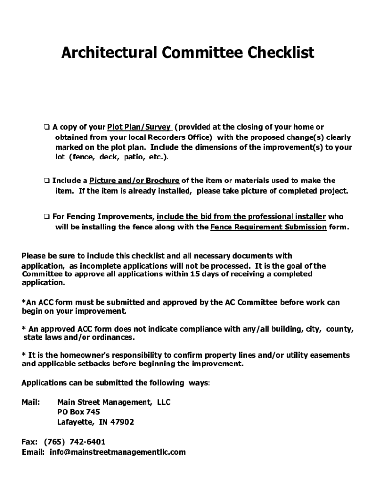 Get the free Architectural Committee Checklist