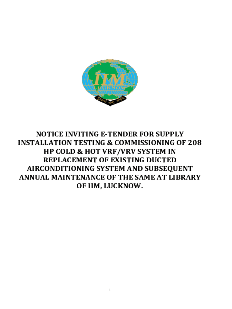 Get the free Notice Inviting E-tender for Supply Installation Testing & Commissioning of 208 Hp V...