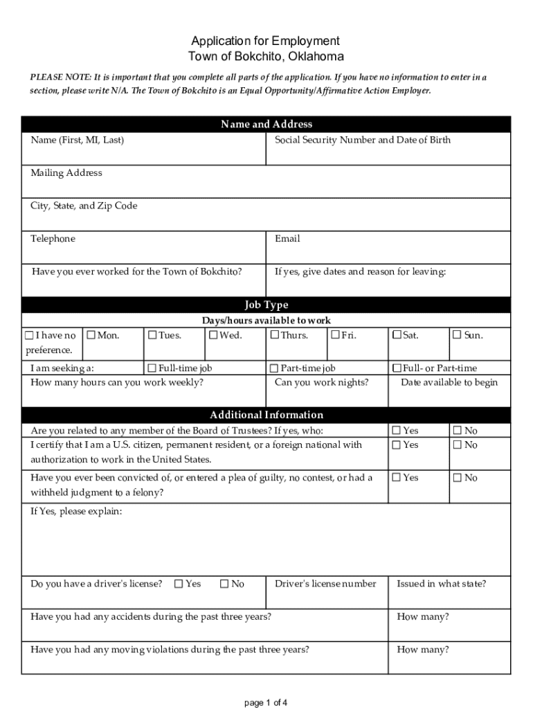 The application for employment form serves as a crucial first step for candidates entering the job market. Employers often place significant emphasis on this document, as it is a primary means of gauging a candidate's qualifications, professionalism, and fit for the role. A well-structured application not only communicates your credentials but also reflects your attention to detail and organizational skills. Through an effective application, individuals can create a favorable first impression, setting the stage for future interactions with potential employers.