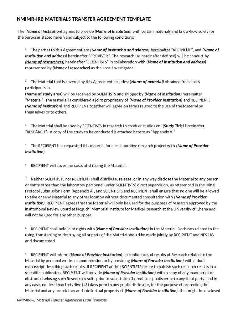 Nmimr-irb Materials Transfer Agreement Template template instructions
