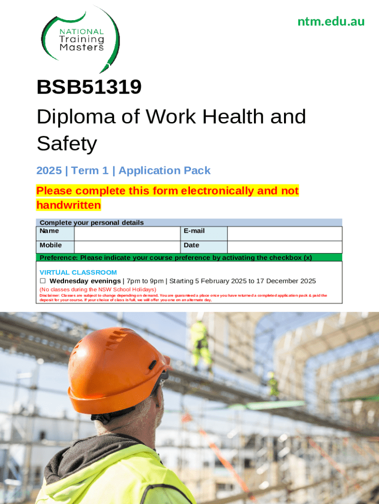 Template Bsb51319 Diploma of Work Health and Safety Application Pack instructions