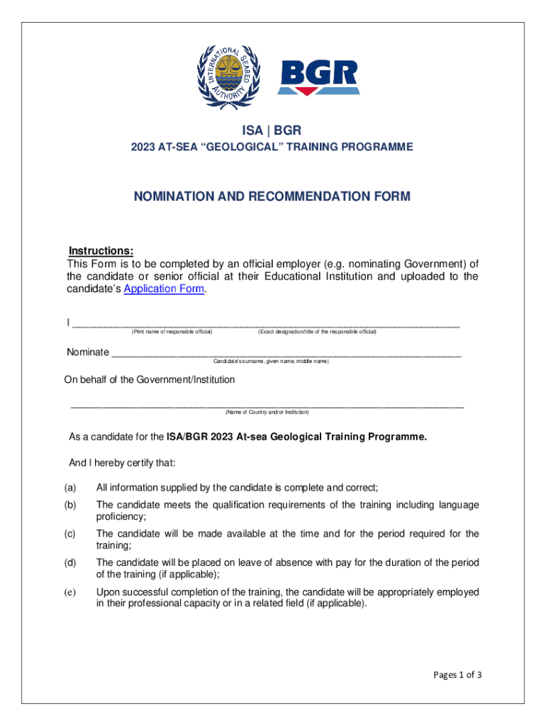 Get the free Nomination and Recommendation Form