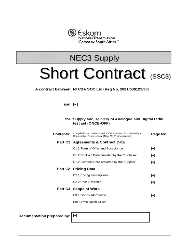 Select the NEC3 Supply Short Contract Form for download or online use.