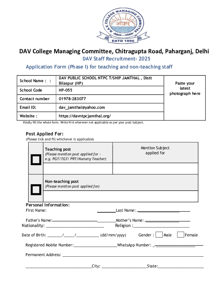 The DAV (Dayanand Anglo-Vedic) College Managing Committee sets an ambitious goal for its 2025 recruitment process, aiming to bring on board qualified, dedicated staff for teaching and non-teaching positions across its institutions. This recruitment effort is guided by a commitment to academic excellence and holistic development for students. The recruitment form plays a crucial role as the first point of contact for candidates, laying the foundation for a successful hiring process.