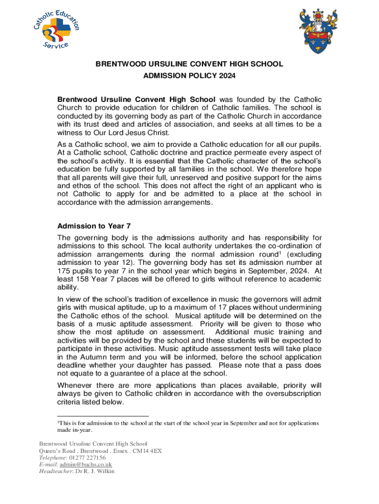 Get the free Brentwood Ursuline Convent High School Admission Policy 2024
