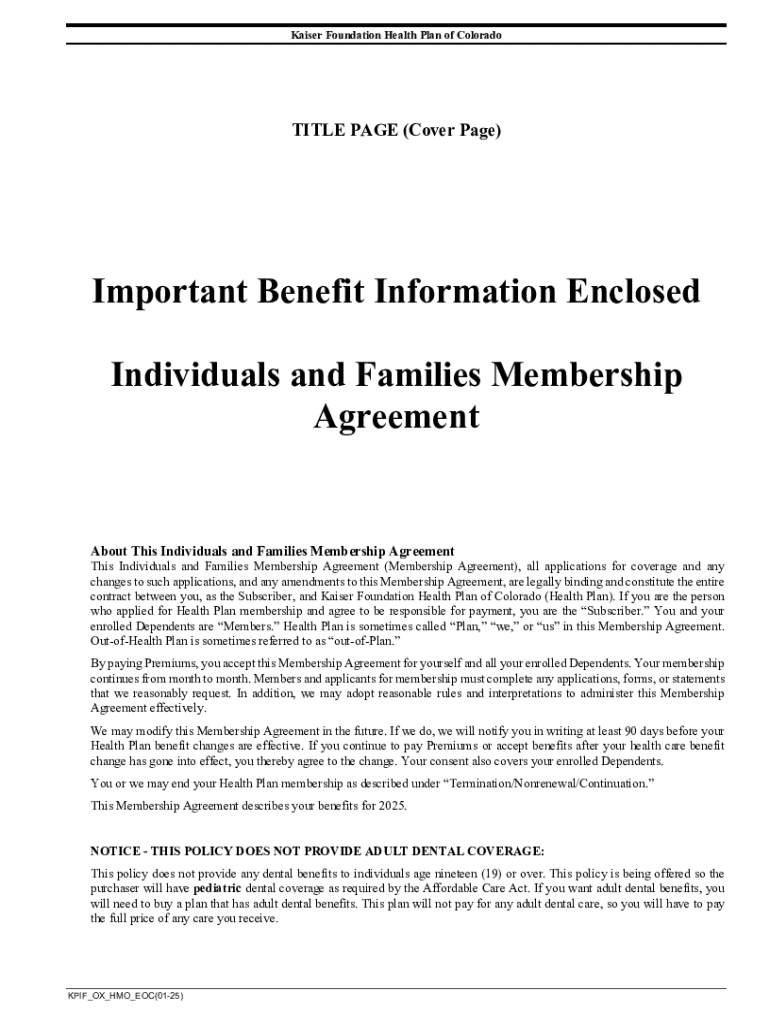 Get the free Kaiser Foundation Health Plan of Colorado Membership Agreement