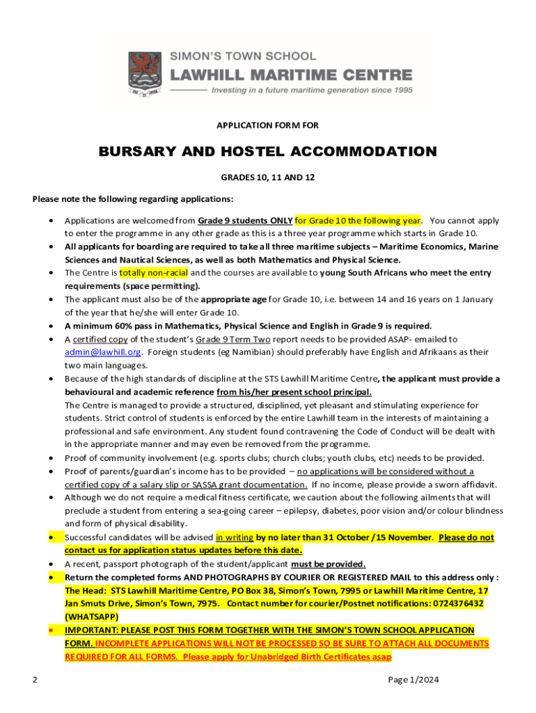 Get the free Application Form for Bursary and Hostel Accommodation